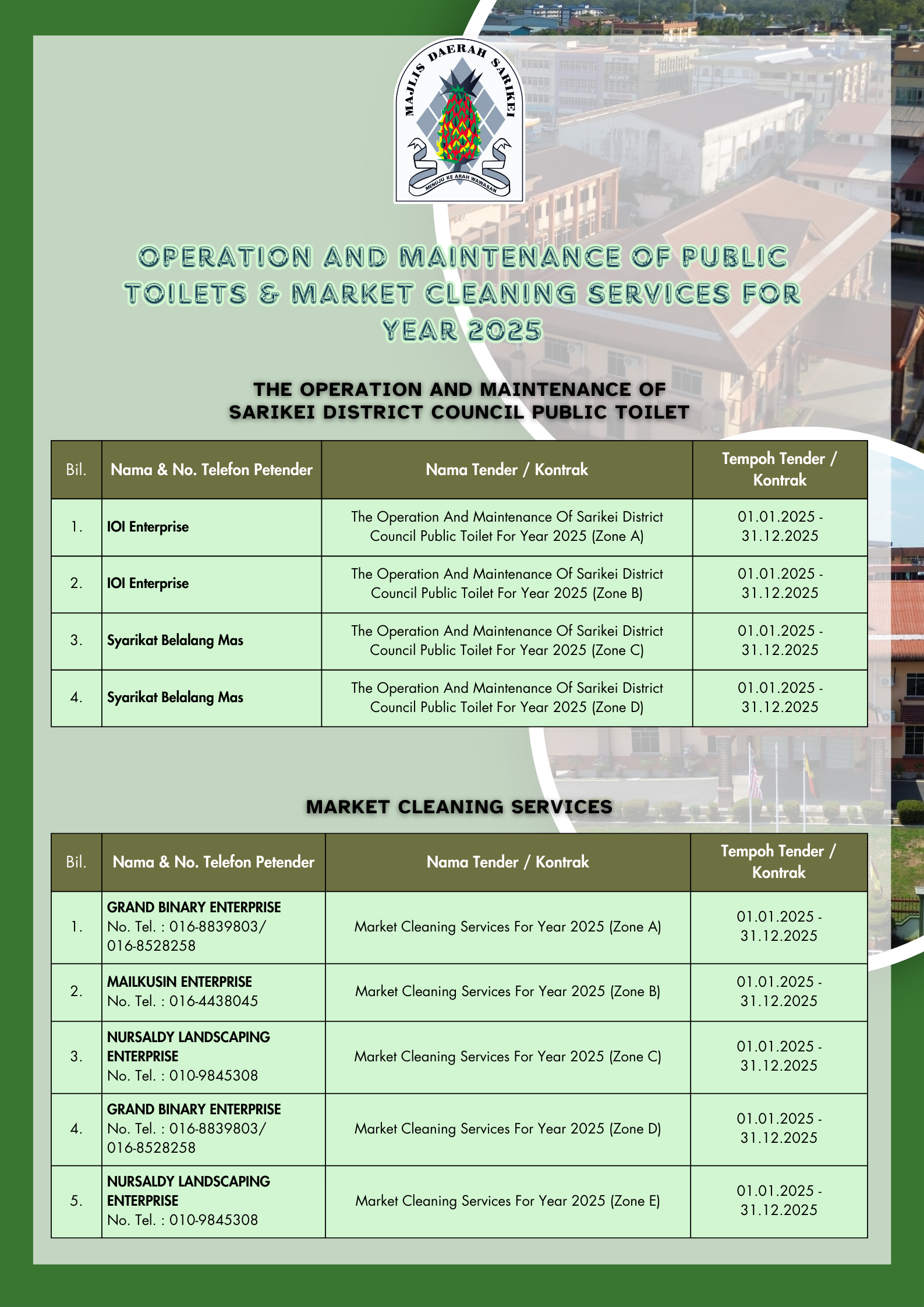 Operasi dan Penyelenggaraan Tandas Awam & Perkhidmatan Pembersihan Pasar untuk Tahun 2025